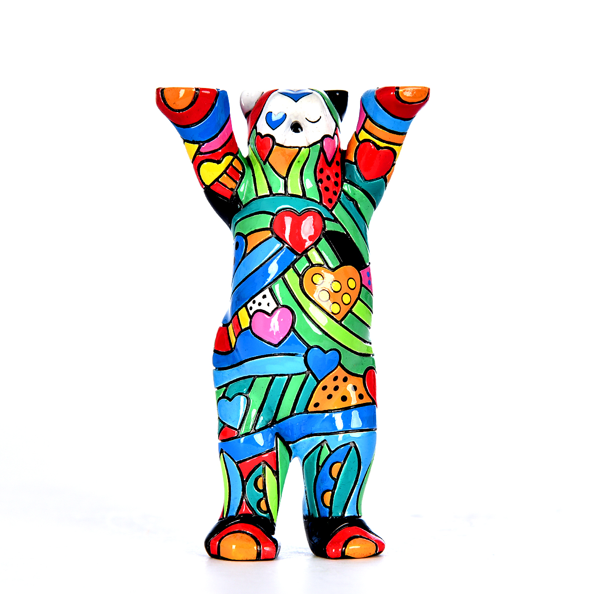 Die Buddy Bären sind Handbemalt, somit ist jeder Bär ein Unikat. Das Material ist ein Kunstharz und sie werden immer mit einer separaten Bodenplatte geliefert.