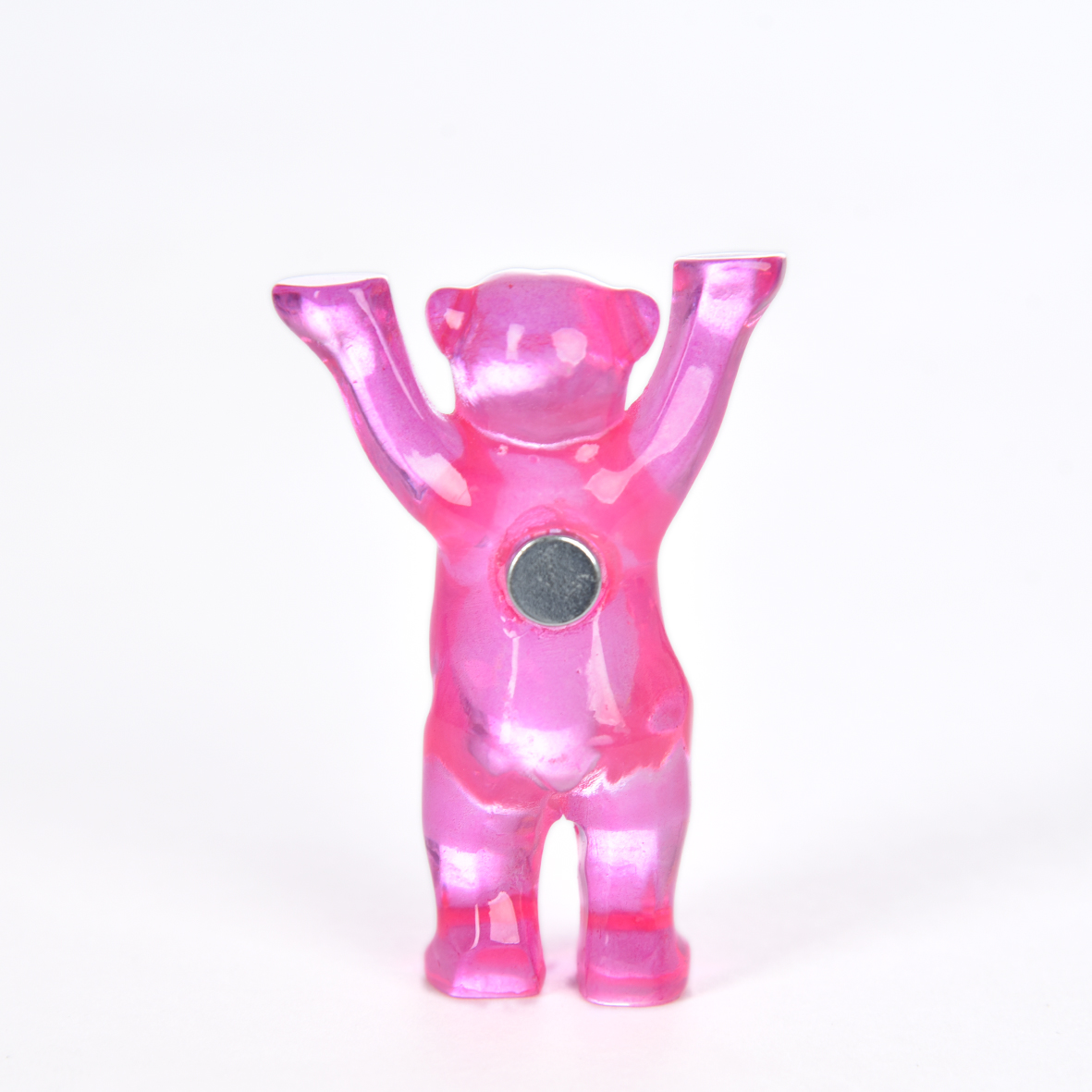 Magnetbär Rosa – Buddy Bär Transparent Farbe Rosa Rückseitiger Magnet für Kühlschrank oder Magnetwand